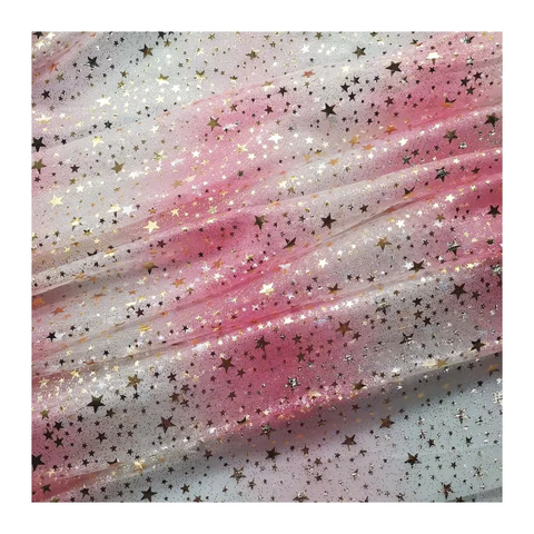 Không đàn hồi 36-Mắt mật độ Polyester gạc váy vải Gradient in ấn lớn nhỏ pentagrams chấm Bronzing cho thể thao En