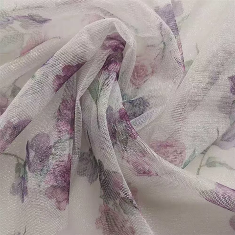 Nhà Máy bán hàng trực tiếp nhỏ tươi in kỹ thuật số spandex vải lưới micro-đàn hồi lục giác dây lưới Bạc màn hình dưới Rose