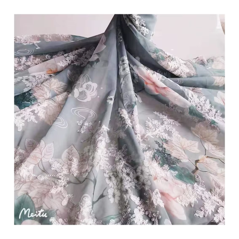 40D mới cho Swiss lưới vải không đàn hồi và polyester 40D lá in Hipster váy spandex vải trong kho